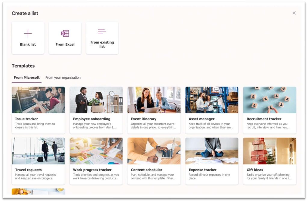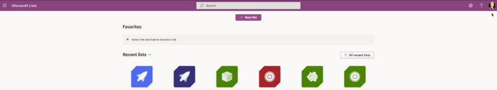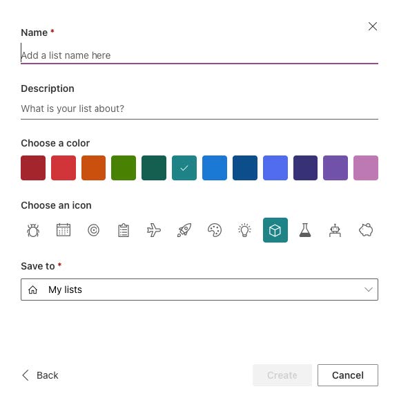 2. Create a List from the Microsoft List application.
